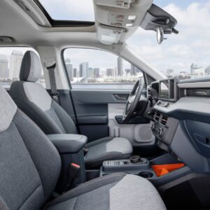 “This customer wants simple, but not basic, and Maverick is all about thoughtful details executed well,” said Barb Whalen, who led the team in choosing materials and colors. “We want this to have a straightforward, durable, honest, well-built feel. The interior was designed with function, purpose and ease of cleaning in mind to help make our customers’ lives better. We’re using unique textures and materials like reground carbon fiber for strength and visual interest. The dash panel has a stonelike finish, like a super-durable synthetic countertop. We strategically placed pops of color for functionality – creating an energetic space you want to be in.”