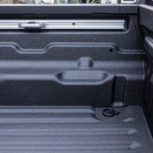 People can create segmented storage, elevated floors, bike and kayak racks and more by sliding 2x4s or 2x6s into slots stamped into the side of the bed. There are two tie-downs, four D-rings and built-in threaded holes in the sides to bolt in new creations.