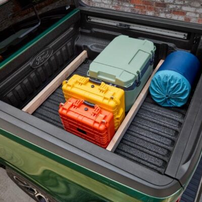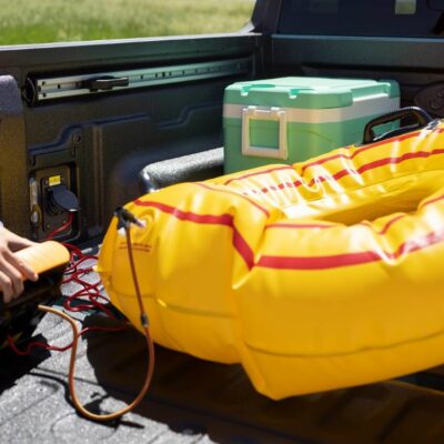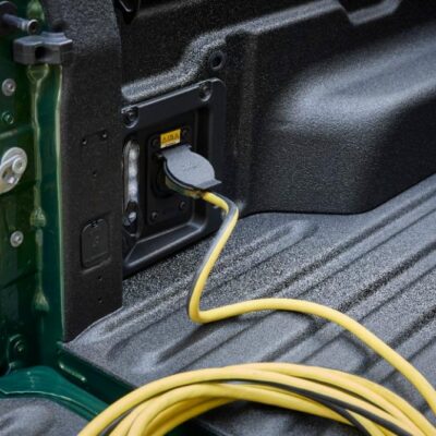 Accessing power to plug in gear like air compressors and battery chargers for power tools is easy with the 110V/400W outlet in the bed (there’s also one in the cab). DIYers can add their own features like 12V outlets or lighting with pre-wired 12V connections.