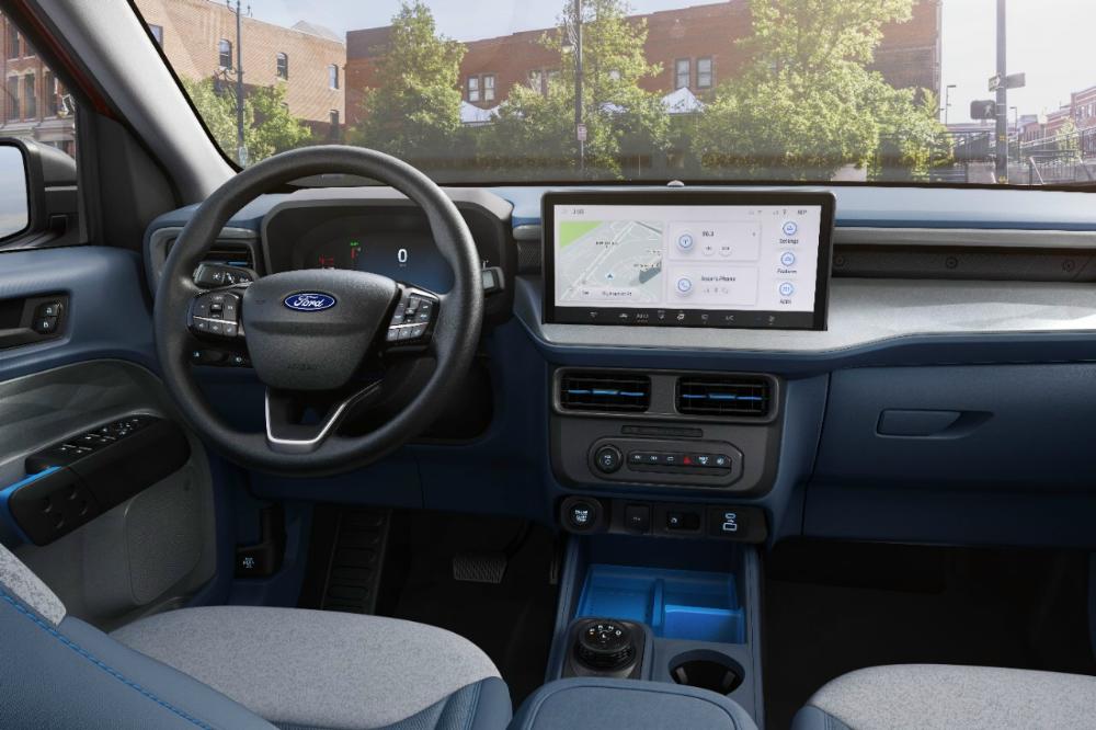 Maverick now features SYNC 4 that is clearly presented on the largest standard touchscreen in its class, a 13.2-inch display that replaces the previous 8-inch screen. It is paired with the 8-inch digital instrument cluster visible above the steering wheel.